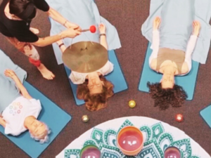 Choose a focal point such as the gong, bowls, your breath, or your heartbeat.