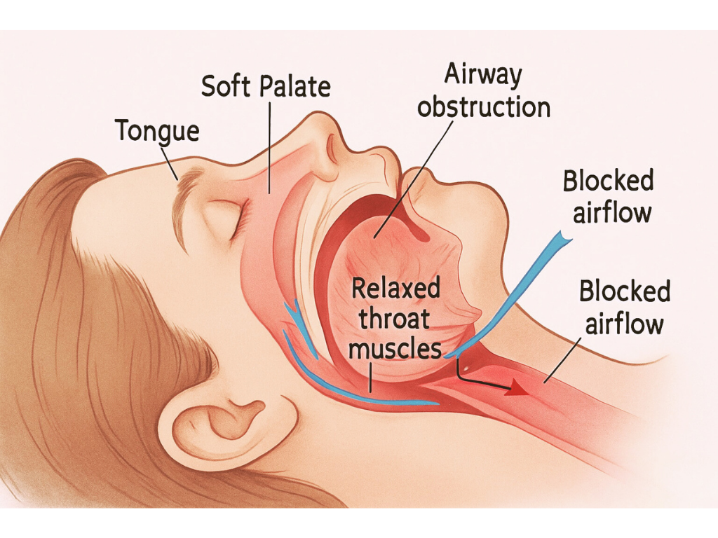 Snoring simply happens when air flows past relaxed tissues in the throat, causing them to vibrate. When someone enters a deep, restful state — especially lying on their back — the muscles of the throat soften and the vibration becomes audible. Snoring is a natural sign that the body feels safe enough to drop into deeper rest.